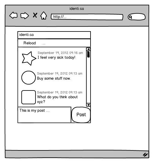 If you take a closer look at the mockup, you see a window containing a toolbar, a list, a text area and a button to post messages. This should cover some common scenarios of a typical qooxdoo application.